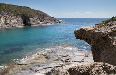 Nel comune di Calasetta, lungo la Costa Ovest dell'isola di Sant'Antioco, si trova la spiaggia Cala Lunga: riparata dal vento, mare cristallino e sabbia bianca circondati da rocce e scogli.