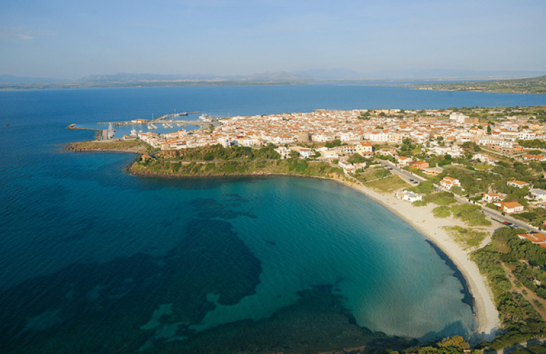 Nella foto: veduta aerea della spiaggia Grande di Calasetta (isola di Sant'Antioco, Sulcis-Iglesiente, Costa Sud-Ovest Sardegna). Da prolococalasetta.it.